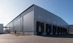 Neubau einer Lagerhalle mit 6.750 m² Nutzfläche. Die tragenden Stützen und die Firstpfette wurden als Stahlbetonfertigteile geplant. Die Satteldachbinder wurden in Holzbauweise ausgeführt.